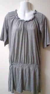 R-FIELD ON LINE SHOPさんのレヴューを書いて【送料無料】を勝ち取ろう!驚愕の500円福袋が登場!さらに同梱しちゃえば【軽やかセレヴストール~♪】が1枚無料で付いちゃいます!の、 7月30日出荷分 が、佐川急便で届きましたよ~。あ、セレヴストールは、いらなかったので単品注文しました…。コレ、ネタバレ拝見させていただいてたところ、大体が、ジュエルズのタンク か グレーのチュニックの、どっちかだったような☆エー!? だったら、タンクのがいいなぁ…。…って、思ってたらああん☆ チミだったか…w「アイ アム グラマラス」 って書いてあるタンクを着て「どこがじゃー!」 と、ツッコまれたり「ブロンド」 って書いてあるタンクを着て「めっちゃ黒髪やん!!」 と、ツッコまれたりしたかったのに、残念でしたなぁ~… おくじゅん~(←?)まぁ 福袋なので、いたしかたありません。届いたグレーのチュニックさん裾とか、切りっ放しにロックミシンかけただけでヘロヘロでーす☆でも、ゆったりと着やすいし、サラサラで柔らかい、触り心地のよい生地なので(レーヨン95%て書いてあるケド☆)パジャマに最適 かと!!…いや、それでは、あまりにも芸がなさ過ぎですよネ。安易に投げ捨てる前に、救済方法を考えた結果…。襟元がダサい…と思ったので、むりやり引っ張ってオフショルにし、小物を足してみましたwすぐゴムが伸びそうなので、まったくオススメできませんwwwやっぱ パジャマが最適 かとwwwワタシにはコレが精一杯でした…w