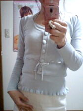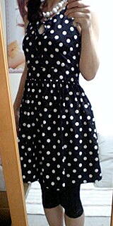 ワンピース専門店 Cawaiiさんは、安くて可愛くて、全品メール便150円のみで発送ってのが、嬉しいデス。6月22日10時からは「誰でも全品ポイント10倍♪」でございますぅ 前に、安くなってた時に、思わずめちゃもて【50%オフ】マリンドット×レースのカシュクールキャミソール【0706炎熱10】1,500円 (税込)と、【めちゃかわ】マリンボーダーのサマーニットワンピース (ゆるかわチュニック)を、1,900円 (税込)で買ってしまいました~。…ン?チュニックだったの?w 確かにミニスカートではありますがw今、共同購入で安くなってるのかな?届いたので着てみました。休日用のはもういっぱいあるから、会社に着て行けるのが欲しいんだけど、大丈夫かなぁ…。つるつるの生地で、ちょっと高級感アリ。リボンが胸の頂点にくるので位置が難しい☆でも、ドットの色なんかがカワイイ~♪デニムに合うのは当たり前として、これならカーデとスカートの通勤スタイルでもだいじょぶかな♪んー、袖が、パフスリだとよかったんだケド☆ シンプルです。楽チンですwスカート部分がスケスケなのでスリップペチコートなど必須です☆ペチのレースも透けてましたが☆ま、スパッツを穿けば良いですしネ♪カーディガンとジャラジャラネックレスなどで、ちょとドレスアップ。これなら会社に行けるかなー。