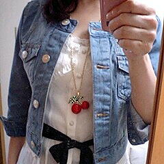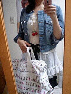 先日、ミッシュマッシュ福袋のネタバレで、デニムジャケットが欲しかったよぅ…と、Blogでボヤいていた所、とっても親切な方に、交換していただけました~Nさん、ホントに、ありがとうございました~っ早速、活用させていただいております~不自然にボストンバッグを持っておりますが…w同じ柄のリュックもありまして…wあ、ピンクの猫たんは、パリスキッズさんのエナメル猫ちゃんブローチ(ピンク)315円 デス…wこのリュックで、さくらんぼ狩りとピクニックに行きました~♪