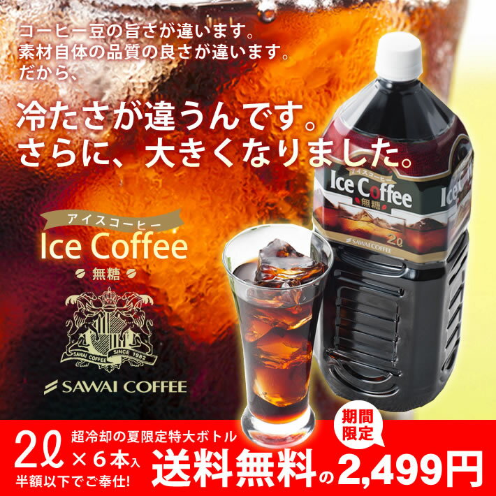 澤井珈琲のアイスコーヒー待ってました!! 昨年までは1Lの紙パックでしたが、今年は2Lペットボトルなんですね。 【澤井珈琲】送料無料超冷却の「夏専用アイスコーヒー」お得な2000ml6本セット