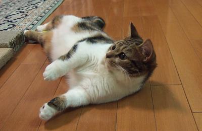 でもなぜか?じゅうたんの上じゃなくフローリングの床の上が好きですね^^;。
