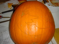 明日のHalloween Partyに向けて、友達のAlexがカボチャのCarvingに誘ってくれたので行ってみた☆ただ、知ってる人もいると思うが、私、芸術方面のセンスはゼロ・・・特に絵に関してはひどいものだ・・・だから最初は見てるだけのつもりだったのだが、せっかくアメリカにいるんだし!と思って挑戦してみることに!!Alexに教わりながら、まずはカボチャの上の部分を切り取って中身をきれいに取り除く!!これはセンスとかあんまり関係ないから私にもできる♪で、いよいよデザインだ(+_+)どうしよー(T_T)って思ってたら、Alexがサンプルを持ってきてくれた!!サンプルをカボチャに当てて写せばいいのだ!!ラッキー♪他のみんなは顔を作るって言ってたから私は何か違う物にしようと思って、月と星のデザインを使うことにした☆まずは型写し!! そしたら次はナイフで型を抜いていく!!細かい部分がいくつかあって神経使ったー(>_