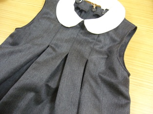 昨日はお祝いのお言葉いっぱいありがとうございました2日目の今日は大あらしで、波乱な幕開けなのですがマンションのお友達と待ち合わせて、集団登校ぽく元気に行きました。幼稚園の時より1時間早くなったので送り出すまでは大戦争でしたが・・・。しかし、朝の一時間が増えるのは大きいですね~~なんだかとっても充実した午前中を過ごせました。昨日のスーツの詳細写真です。まずはワンピース悪戦苦闘しながらパターンをおこしました。襟を変えて遊ぶデザインをぐんぐんかわいくなる少女の服の本で見てかわいかったので襟が変えられるように、ボタンでとめるようにしました。この本は使い勝手の良くておしゃれなデザインが多くてお勧めです。ジャケットはおすましファーコートの時のパターンを使いました。その上うれしいことに布地が三分の一の価格で特売してたので材料費全部入れても3000円かかってないんです・・・にんまり先日作った私のスーツもまずまずでした。