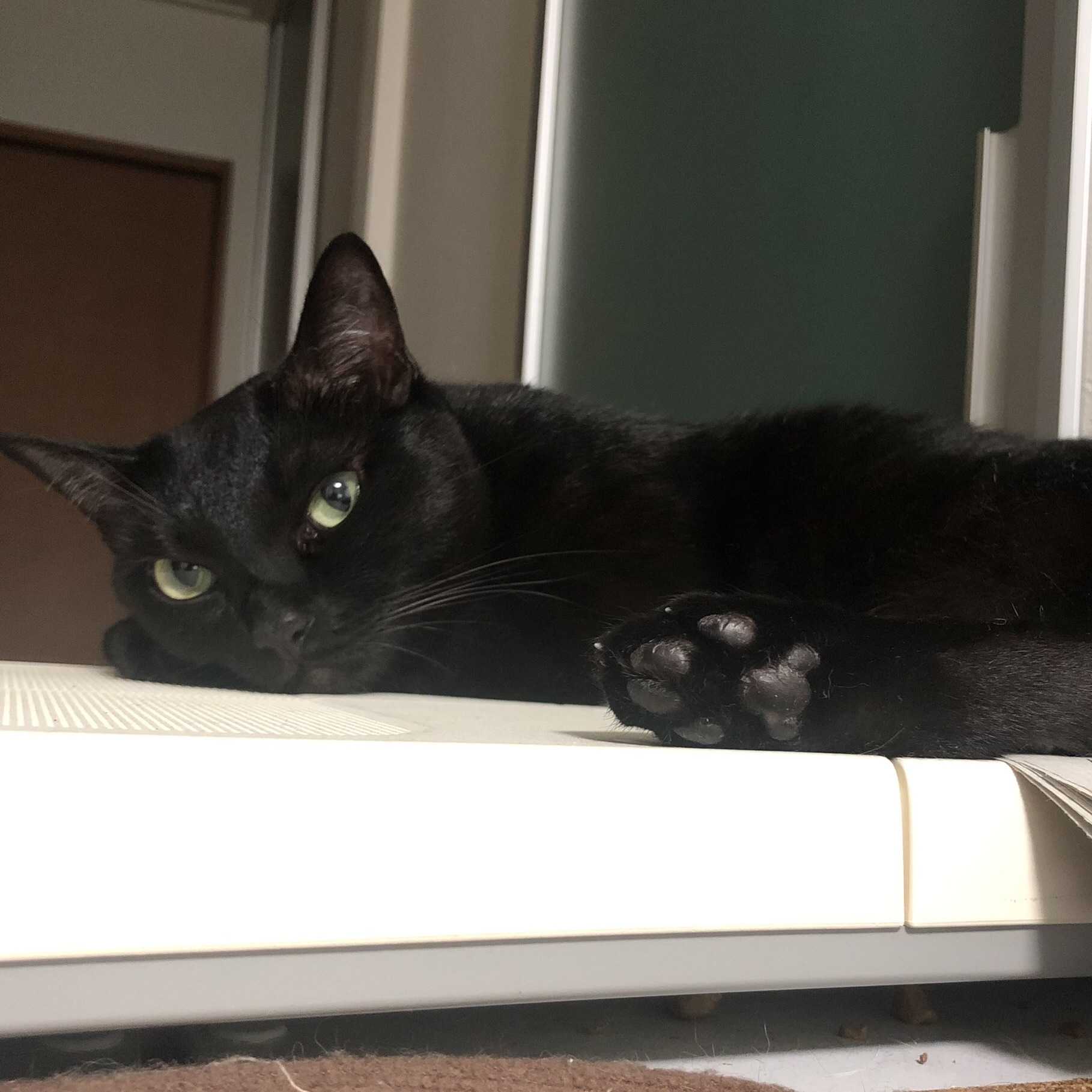 知らない間に真後ろで寛がれていて、後頭部をグイグイ押されて何かと思ったら知恩の可愛い御御足で和みました。