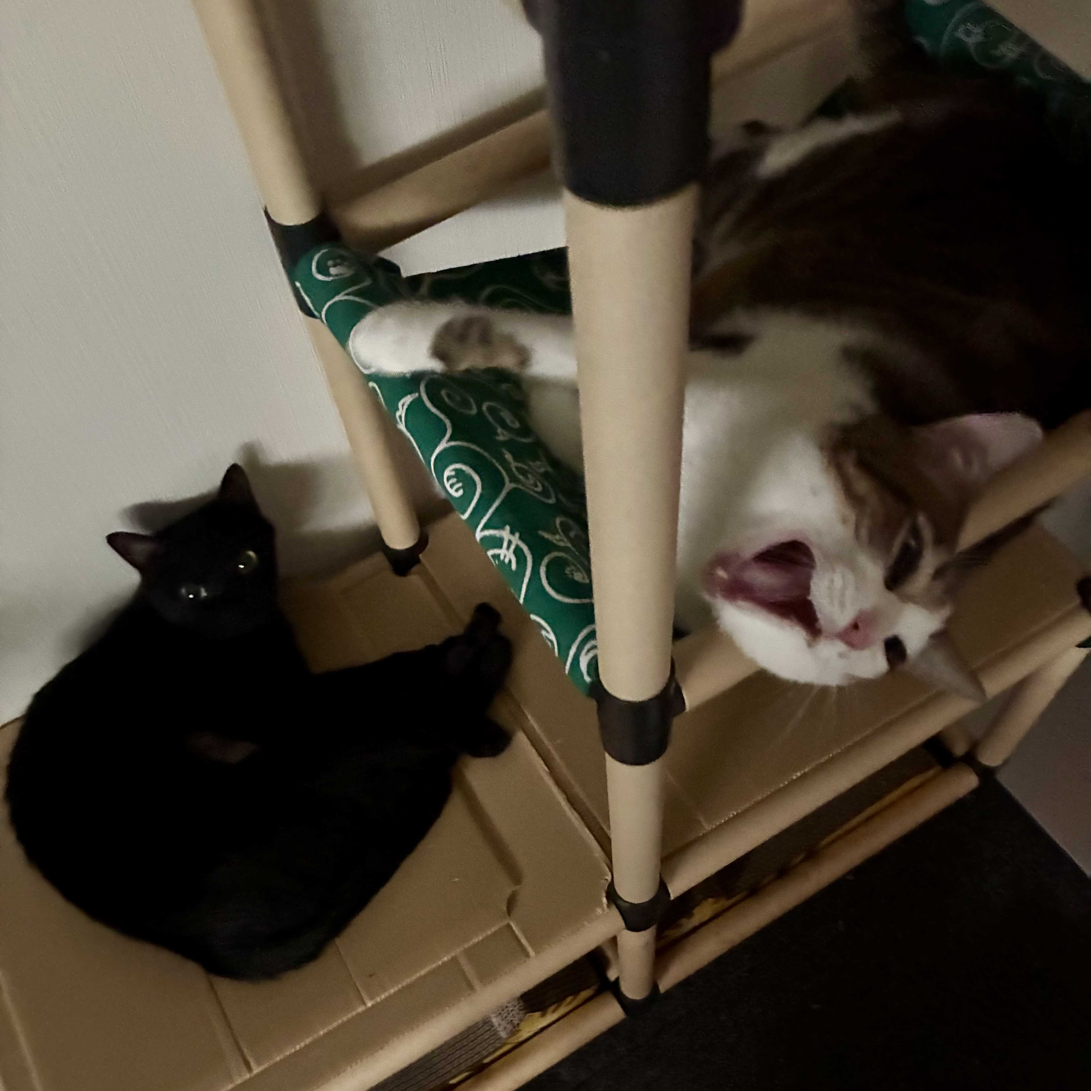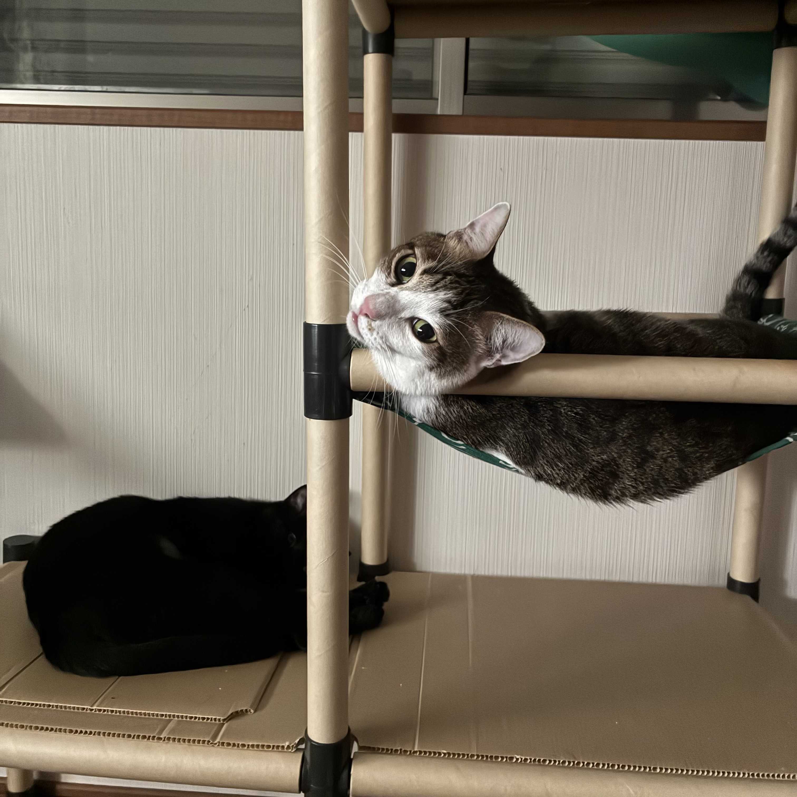 りょふのために作った唐草ハンモックは才知が占領してしまったから、知恩の分も作ってキャットタワーも増築してあげないといけないのに、ごめんね知恩。