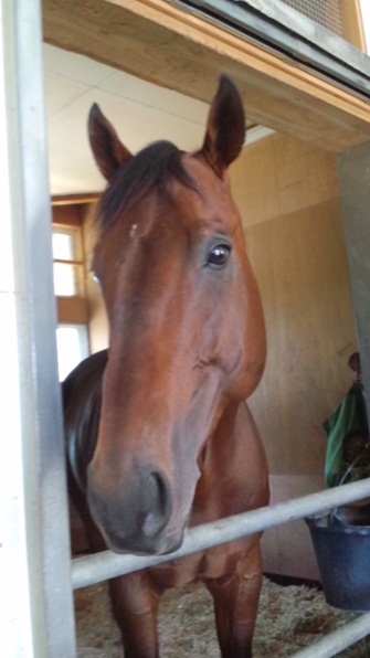 こちらのブログを、ほとんど更新しなくなってしまっていて申し訳ないです;;実はアメブロで馬専門のブログを立ち上げております。こちらでは定期的に更新しているので、遊びに来ていただけると嬉しいです^^なごみぃ☆の馬馬日記♪以下、上記日記でもご紹介している記事を書きます^^約1年ぶりの乗馬です~!!馬と触れ合うのも久しぶりすぎる私は、馬にハグして思いっきりその匂いを吸い込み…泣きそうになりました^^;(笑)先日、近所にとても素晴らしい乗馬クラブを発見し、テンションあがりまくりの私です。もう、ここの会員になろうと思っています(笑)そんな訳で、どんな騎乗をしてきたのか、こちらでお伝えいたします~!!(ところどころ、メインブログのアメブロへのリンクが入ります^^)見学だけ…と思って訪れた私ですが、騎乗風景を見ているうちに、みるみる我慢できなくなってきました^^;「トライアルレッスン」という仕組みがあるということで、無理やりお願いして乗せてもらえることに。自分の騎乗レベルをお伝えし、配馬が決定。広い馬場で乗せてもらえることになりました。ここで一つ余談…自分の騎乗経歴についてです。長くなるので別記事にしますが、たぶん、普通のクラブの会員さんとはちょっと異なる経歴を歩んでいたりします^^; なんせ途中で競走馬とか乗ってるし…この「競走馬の経験」が、私の騎乗歴の中でネックになっていたりするのですが、その辺は別記事 でお楽しみください(楽しめるのか!??)別記事「私の騎乗経歴話を元に戻します。選んでもらったお相手は カルロス 君中間種のセン馬です。背はサラブレッドよりは大分低めながら、このクラブで一番長い腹帯を使っているという面白い体型をしています(笑)とっても整った顔立ちで、パンフレットの表紙に使われているほどという美形くん♪とっても懐っこく、可愛らしいお馬さんです^^そして賢い!!さっそく騎乗!!並歩でまず動かしてみます。「とりあえず、今までやってきたことを、ありのままにやってみせて下さい」と指導員さん並歩から速歩で蹄跡行進。中間種ということで覚悟はしていましたが、やはり動かしにくい!!^^;実は敏感なサラ(サラブレッド)ばっかり乗っていた私は、騎座が全く出来ていない…という課題を見つけていたのですが、それが正に現れた感じです。「今まで乗っていたのはサラばっかりでしたか?」「はい…(っていうか、敏感さの頂点みたいな競走馬にも… 心の声^^;)」指導員さんにもすぐに見抜かれました。後で詳しく説明しますが、騎座が安定していないと推進の扶助を上手く伝えきれず敏感でない馬の場合は、なかなか動かせないという現象が起こります。「長鞭を渡しますので、これを脚の替わりにつかってください。サラと違ってちょっとした事では驚きませんから。脚を使って騎座が不安定になるよりは、どんどん長鞭を使いましょう」ふくらはぎで圧迫を加え、それでも動かなかったら踵を使う…というのが私のこれまでのやり方なのですが、それだと騎座が乱れて隙間が生じ、その隙間が馬にゆとりを与えてしまう様なのです。現にその隙間に向かって馬がよれ、あらぬ方向へ行こうとする…という現象が何度か起きました。※以下、画像参照赤い隙間に向かって、黄色い矢印へ馬が行けるスペースが出来てしまうということです。踵を使おうとするとどうしても膝が開いてしまい、そこに馬がつけいれる隙が生じる…という訳です。実際、カルロス君は非常に賢い馬で、何度も乗り手を試そうとちょっとでも隙があればそこを突いてきました^^;長鞭を使ってなんとか形になってきて、駈歩で蹄跡行進をします。そこまでは良かったのですが、輪乗りに入ろうとした時に、曲げられません^^;「なごみぃ☆さんは上半身が先行して動く癖があるから、下半身の動きがついてこれてませんね…騎座での合図が遅れるから、上手く曲げられないんですよ」「うむむ…わかってはいても、体が思うように動きません;」「たぶんなごみぃ☆さんは今まで感覚的に乗ってきたと思うのですが、これからは馬がどうして動くのか…という理論も含めて練習していきましょう。まずは、【騎座」というものを意識して使えるようになりましょう。」長くなるので、続きます^^