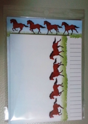こんばんは^^なごみぃ☆です。今日は新たな馬グッズをご紹介したいと思います。↓こちらです!!オリジナル「馬の」レターセットです~!!ず~っと作りたいと思っていたんですが、なかなか良い業者さんが見つからず(小ロットで造ってくれるとこって少ないんです;;)悶々とする日々…やっと見つけて、さっそく注文しちゃいました~!!↓便箋のデータ画像↓封筒のデータ画像ずっと求めていた物に出会えて、幸せですちなみに、こちらのレターセットは、馬と小鳥の雑貨屋さん~なごみぃ工房~にて、お求めいただけます~!!ただ今、特価で650円にて販売中です^0^しかし、それにしても・・・・ぜんっぜん乗馬できてません!!!なごみぃ☆の馬エネルギーも、もう限界・・・・早くお馬さんに会いたいです~