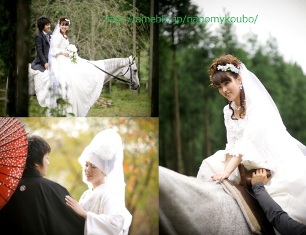 こんばんは^^なごみぃ工房管理人のなごみぃ☆です 今日は実は、結婚1周年の記念日だったりする私です… なのに、ちょっと忘れてて() 会社の飲み会を入れてしまい、 旦那さまはコンビニ弁当で、私は先ほど帰宅したという… とってもイケナイ奥さんです。。。トホホ しかし、あっという間の1年でした。 「夫婦とは、2人で築きあげていくもの」。。。 まだ、「夫婦」であることに ちょっぴりなじめていない2人ですが ここまで来れたことに感謝 お互い、色んなところで相手を思いやり、想ってここまで来たんだなぁと 思うと涙がほろり。。。 今までありがとう。 そして、これからもどうぞよろしくお願いします 1周年の記念に、1年前の今日の写真を載せます。 「馬と一緒にウエディング」が大大大目標だった私(笑) さすがに会場には連れて入れなかったけど、 「ドレスで馬に乗る!!」っていう夢は叶えることができました。 一生の思い出デス