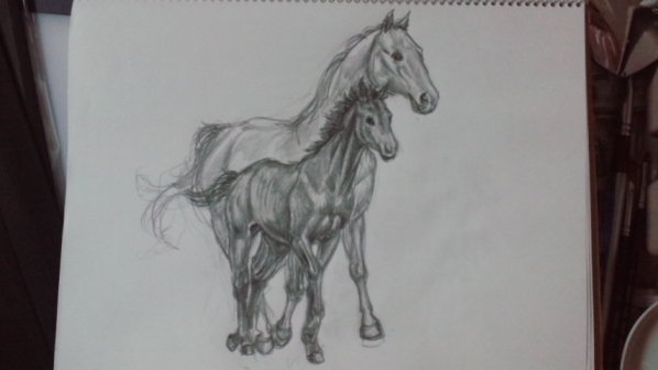 実物の仔馬には、まだ出会ったことのない私です。いつか、あのぷにぷにのお鼻をさわりたいなぁ。。。初めて仔馬を描いてみました。親馬とはバランスが違うから、難しいです;;参考写真はサラブレさんよりお借りしました。母馬はディアデラノビア号。現役時代も知ってるので、なんだか愛着がわいてきます。ふたたびスケッチに目覚めたなごみぃ☆。。。しばらく描くと思います。精進あるのみ~!!
