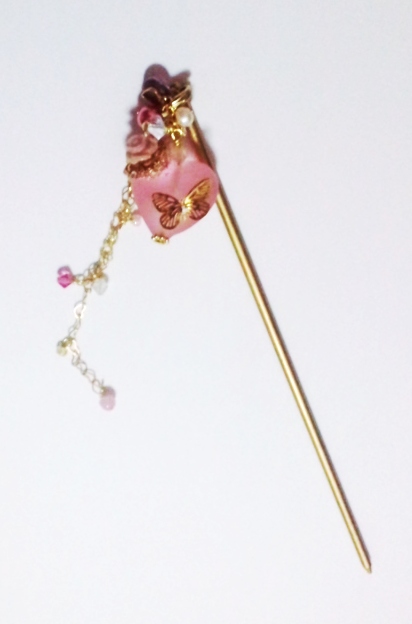 お久ぶりです~!!ただ今「新商品開発」&「新サイト建設」&etc…で、なかなかブログ更新できなかった私です~!!(殆どただの言い訳…^^;)今日は、そんななごみぃ☆が、ただの馬好き&イラスト描きだけでなく、うら若き乙女である!!ということが分かるネタ書きます~(なんじゃそりゃ 笑)実は今日は仕事を休んで、妹と一日デートをしてきました♪♪そこで、久しぶりに町に出た私(^^;)は、見るもの全てが新鮮でびっくら仰天!!色々お店も入れ替わっていて、すごく楽しい時を過ごすことが出来ました^^その中で一つお店を紹介します。手作り工房清水板ガラス館さん妹が連れて行ってくれたので、場所の詳細は不明ですが^^;京都の四条の辺りにあります。キュートな店構えに釘づけの私たち。ちょうど妹が先輩のプレゼントを探していたこともあり、中に入ることにしました。しすて中の商品見て2人とも興奮MAX!!「可愛い~」「綺麗~」連発。お話によれば、全て手作りだそうで、それにまた感激!!そして、色々あって超・金欠の私に、とっても優しい妹が買ってくれたのが…コチラ↓かんざし です。「どうやって使うの??」って思ってたら、お店の人が実演して見せてくれ、その鮮やかさ&簡単さにびっくり!!ハート+ピンクの黄金コンビに弱い私…すっかり虜になっちゃいました。「かんざしの使い方」を説明したDVDも付けてくれるので、初心者にも安心です♪「かんざし」がブームになる日も近い!!かも!??とにかく、かわいい物に癒されまくった日でした~^^