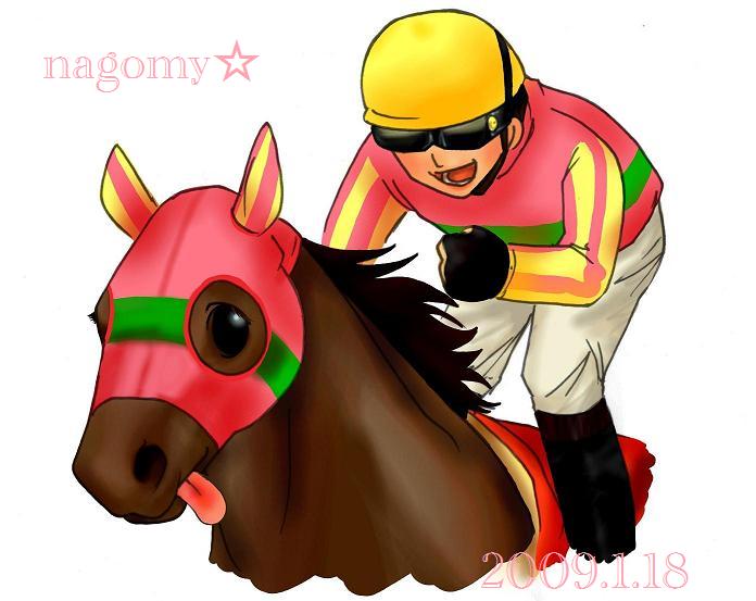 先日のエリ女で引退する彼女…色々思い出があったりするので、過去絵を持ってきてみました♪「このレースで引退!!」って言ってて逃げ粘り、勝っちゃって 引退が伸びたという例のレース。 そのとき、ゴール前で舌ぺろんぺろんしてて(笑) あまりに可愛くて描いちゃったイラストです。 あの時はほんと、びっくりしたなぁ。。。 あと、かえで賞勝った時だったかな… なんかずっと地面を見ながらのんびり歩いていて、 「こんなんで走れるのん?」と言ってたらいきなり勝っちゃって それ以来「地面見ながら歩いてる仔」は買わなきゃって思う様になったもんなぁ… イラストの日付見たら2009年1月18日。 もう1年半経ったのねん。 お疲れ様。一昨日の貴女も、とってもプリティでした^^相変わらず厩務員さんに甘えてたしね 第二の馬生も、その可愛さで楽しんでね#^^#