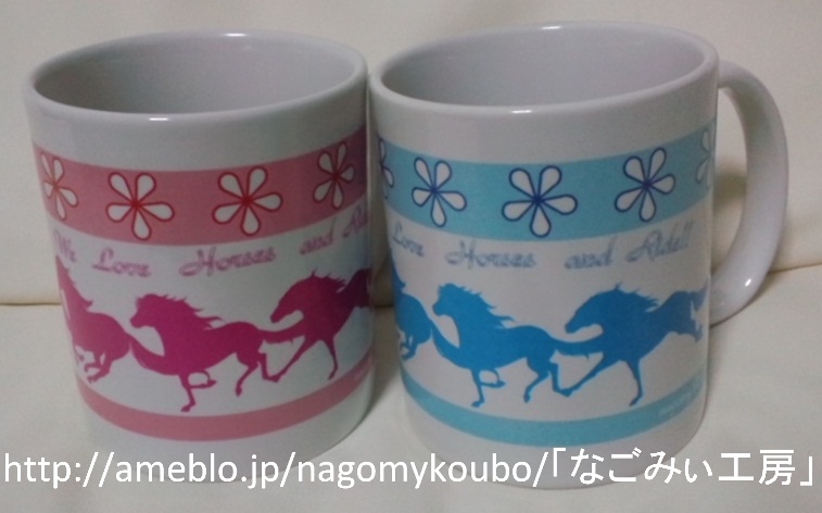 お久しぶりです。なごみぃ☆です。ご無沙汰している間、何をしていたかと言いますと…↓こちらのネットショップ馬と小鳥の雑貨屋なごみぃ工房の改装&リニューアルオープンしてました~!!あぁ疲れた^^;(笑)今はまだ商品数少ないですが、これからどんどん増やしていく予定です。皆様の、「こんなの欲しい!!」をかたちにしていきたいと思っていますので、どんどんご意見下さるとありがたいです。どうぞよろしくお願いします~!!!ちなみに、新商品はこちら前ご紹介したマグカップですが、中の絵柄は↓この三種類をご用意。大いに、迷ってください(笑)よろしくお願いします~!!なごみぃ工房
