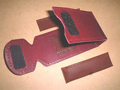 ちょうどワインレッド染色の牛ヌメ革があったな