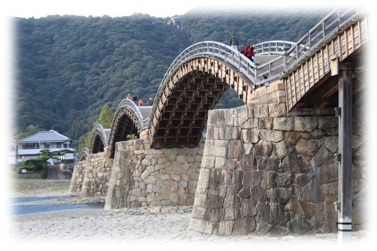 11月5日~7日にかけ、山口県の周防國一宮玉祖神社と長門國一宮住吉神社の二社を巡ってきました。旅程は行きは車移動今回はその1日目のダイジェストを掲載します。旅程は、初日は5:30に名古屋高速に乗り・新名神など高速を乗り継いで、目的地の山口県への移動になり、途中、休憩・朝食で宝塚をはじめとしたSAに立ち寄りながら、ひたすら西に向かいます。11/5 10:30吉備SA(下り)で小休止。このSAのシンボルは写真の五重塔と作者不明の桃太郎像かもしれない。左の五重塔は備中国分寺の五重塔をモチーフに造られた給水塔なんだとか、右の像はSA入口側に安置されているもので、桃太郎と家来御一行様です。そうね、ここは吉備國一宮 吉備津彦神社のお膝元だ、どこかで見たようなフォルムの像は、吉備津彦神社で見たものに通じる、シュールなもの。上の写真は2020年、吉備津彦神社の参拝者駐車場に安置されていた桃太郎と家来のセメント像、中山森造氏の手によるもの。SAの像は素材も作者も不明ですが、桃太郎の初々しいイメージとは違う独特の雰囲気を漂わせています。所在地 / 岡山県岡山市北区今岡476なんだか着いたような気分だが、ナビの広域表示で見てみると、最初の経由地錦帯橋まで、まだ200kmと道のりは遠い、見るんじゃなかった。13:50錦帯橋下川原駐車場に到着、無料で駐車できた。ここから錦帯橋と対岸の施設を見ていく予定らしいが、橋に向かう途中の道筋で遅い昼ご飯。コーディネーターのかみさんが昼食の場として選んだのが写真のパンサー。何の変哲もない普通の小さなお店。こちらで岩国鯖寿司と岩国寿司、レンコンコロッケを食べるのが最初のチェックポイントなんだとか。岩国鯖寿司にはとてもそそられ、楽しみにしていたが、既に売り切れており個人的にはとても残念だった。店内は昔懐かしいお好み焼き屋を連想させる雰囲気で、テーブル席も3席ほどのテイクアウトを主とした店構え。オシャレで映えるお店がもてはやされる今どきの趣ではないが、むしろおやじ世代には落ち着ける雰囲気です。上は岩国寿司。所謂押し寿司で、岩国藩の拠点となる岩国城の保存食として生まれたのがはじまりだそうな。下が熱々のレンコンコロッケ。どちらも素朴な味で美味しいものでした。鯖好きな自分としては、岩国鯖寿司はたべておきたかった。パンサー所在地 / 山口県岩国市岩国1-5-1114:15。錦帯橋。日本三名橋(日本橋、眼鏡橋、錦帯橋)のひとつに数えられる、木造の五連アーチ橋。かみさんも自分も一度は渡っておきたかった橋です。錦川に架けられた五つの橋は、継手や仕口といった組木の技術が用いられ、帯鉄で巻かれただけの木造橋で、人が歩く踏板は鉄釘が打ち込まれています。錦帯橋は延宝元年(1673)、岩国藩主吉川広嘉により、錦川右岸の岩国城と対岸の城下町を結ぶ目的から建造されたもので、川の増水などから幾度も流失するも、都度修復が行われ現在の橋は2001年に架け替えられたもの。式年遷宮のように、定期的に修復する伝統があったようで、それらは橋の維持管理と技術の継承も兼ねているともいわれる。コンクリートは50年程で寿命を迎えると聞きますが、こうした木造建築は手をかけさえすれば綿々とその姿を保っていくことができます。自然を有効に使い、森の再生にも貢献し、古材は別の用途にも使われるなど、日本の木造建築は造形的にも美しく世界に誇るべき技術です。古いものは取り壊され、コンクリートに造り変えられ発展してきた街も、老朽化が進み問題化しつつある昨今、これまでの流れを見直すべき時に来ているのかも知れない。錦雲閣。吉川広嘉が建造した錦帯橋を渡り、吉川広嘉公像を横目に吉香公園方向に向かう。旧岩国藩主吉川家の居館跡に噴水や観光施設が付加されたこの公園には、吉川家の歴史資料館などがありますが、大陸の観光客が半数近くを占めている様に感じられます。写真は公園の堀沿いに建つ錦雲閣と呼ばれる、桁行6間、梁行4間、身舎5間×3間の入母屋造の楼閣風の建物で公園のランドマーク的存在です。一階が土間で二階は床板張りで高欄が付けられ、軒下に「錦雲閣」の額が架けられています。錦雲閣後方に、旧岩国藩主吉川家歴代の神霊を祭る吉香神社の絵馬堂として、明治18年に建築されたもので、絵馬殿としては大きな建物で国登録文化財に指定されています。吉香神社。反り橋を渡ると吉香神社の社頭。旧岩国藩主歴代の神霊を祀る神社で、現在の社殿は享保13年(1728)に白山神社境内に造営されたもので、明治18年(1885)に現在地に移築されたもの。山口県神社誌(1972)は吉香神社について以下のように纏めています。「由緒吉川家の祖神としてもと安芸国山県郡新庄村(広島県山県郡北広島町)に祀られたが、吉川広家公岩国入府後正徳年代に当城山の麓、白山比咩神社内に遷座される。明治7年旧領内の士庶相謀り八神を合祭し吉香神社と称し、同18年現地に迂す。昭和25年広嘉公を合祀す。(旧県社)」吉香神社創建 / 不明祭