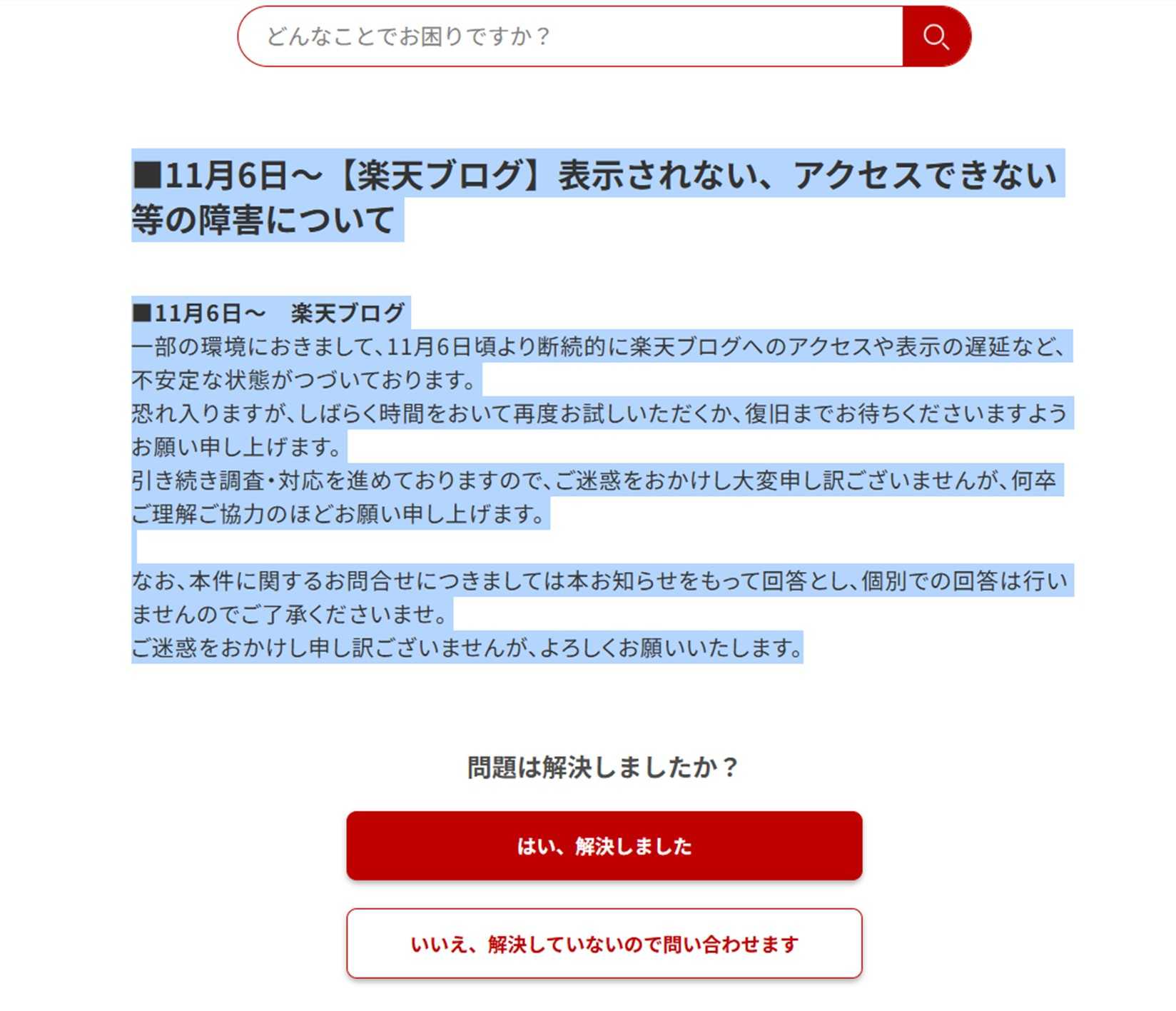 相変わらずの状況が続いています。マシンの設定に問題はない様で、他のブログは正常に動いているようです。僅かな時間ですが動く時もあるようですが、以下のメッセージまでは確認できました。要するに「復旧するまで問い合わせるな」という事。一体何が起きているのか?いつ目途にしているのか、知りたいところです。