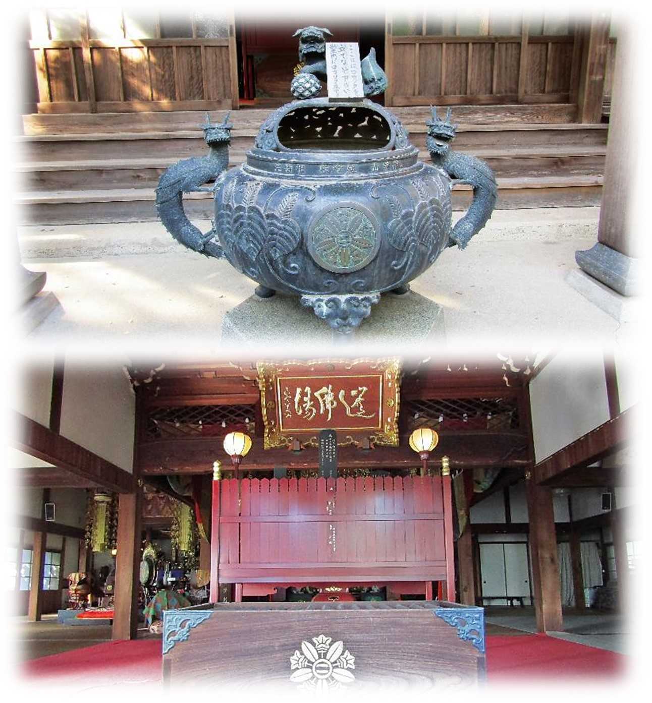 立派な香炉だ、ここにも竜胆車の紋が入る。