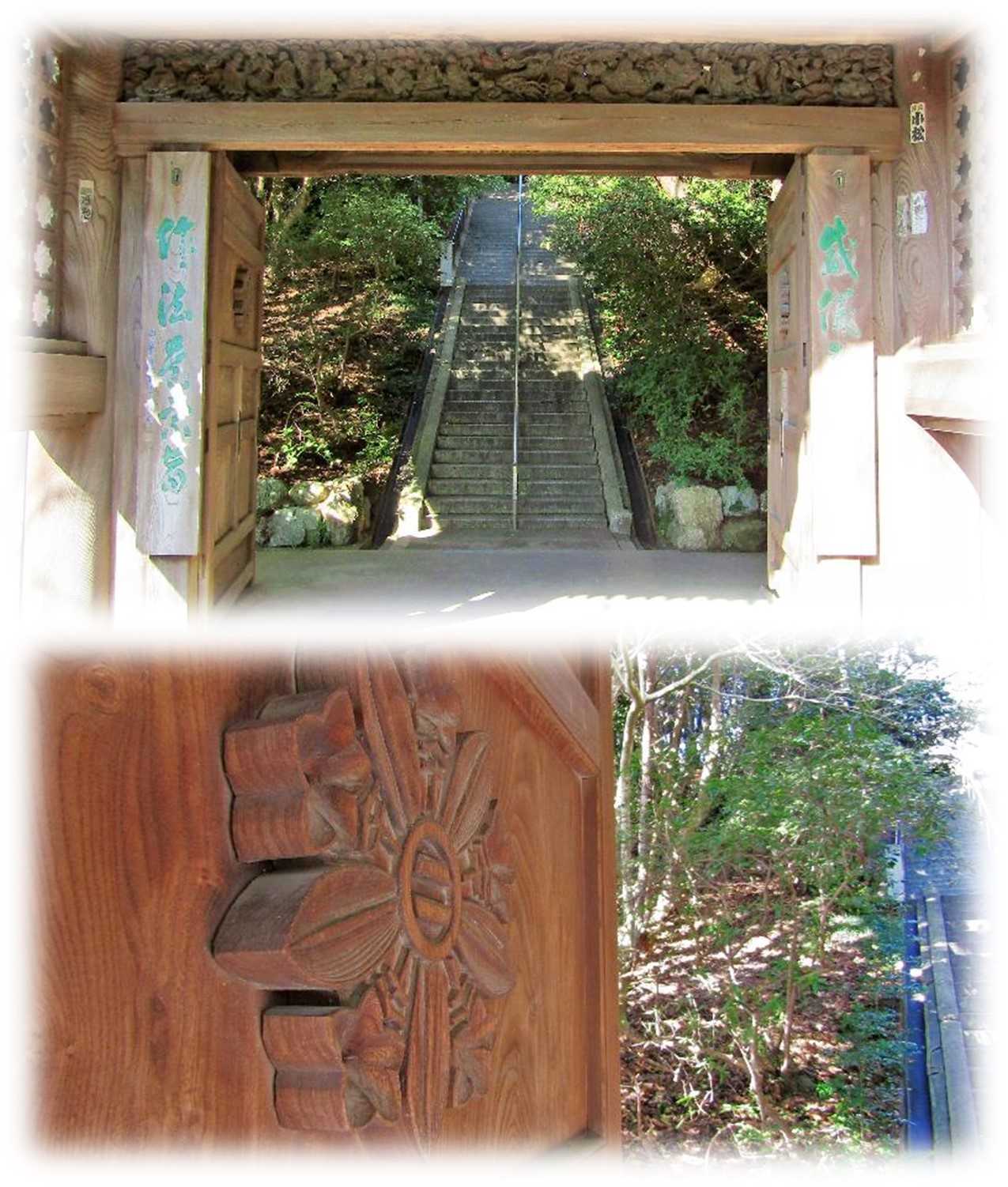 山門扉に紋があつらえてあるが、りんどうくるまのようですが中央に二の文字が入り馴染みのない紋。
