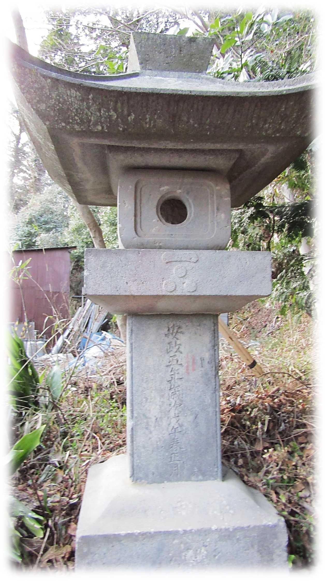 安政5年(1859)に寄進された毛利家の一文字三星の紋が刻まれた常夜灯。