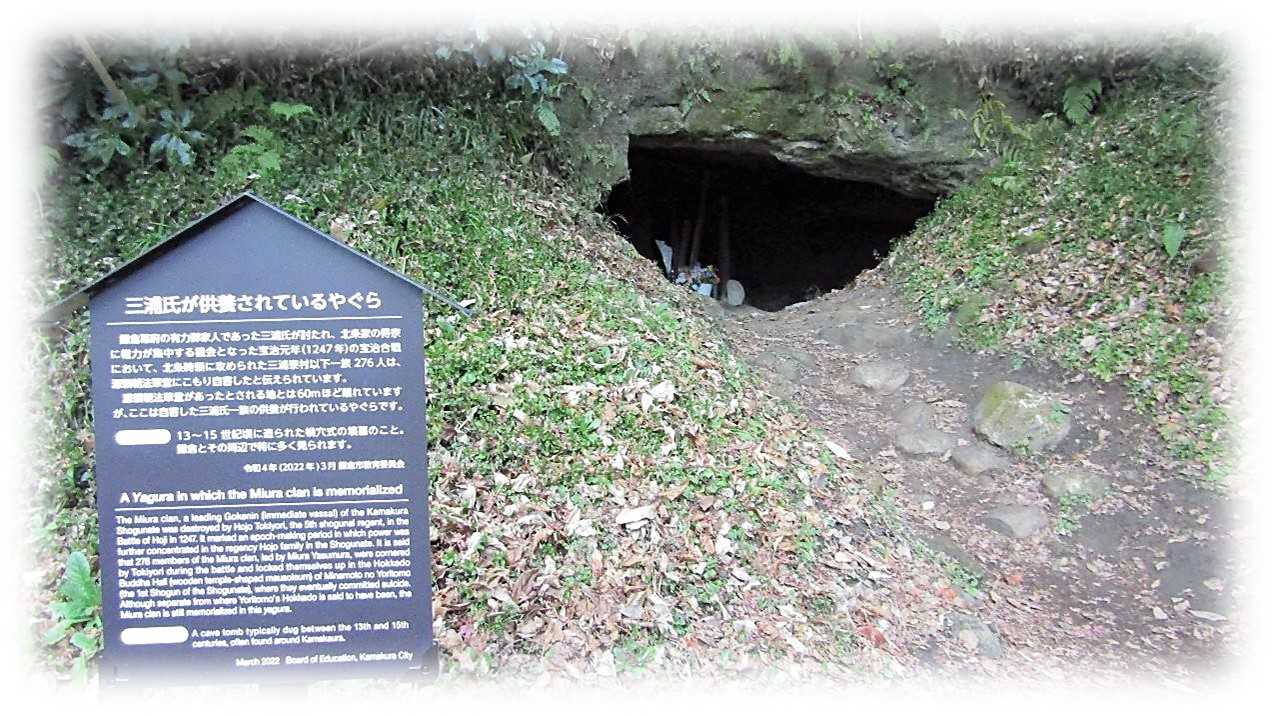 ここは13~15世紀頃の横穴式墳墓で鎌倉幕府の御家人三浦氏が供養されている。