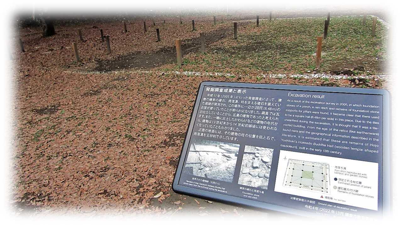 「貞王3年(1224)、北条義時の没後、供養のために建てられた墳墓堂(法華堂)の推定地とされ、平成17年(2005)の発掘調査で堂跡の遺構が発見された。