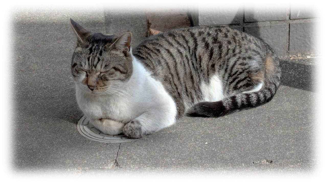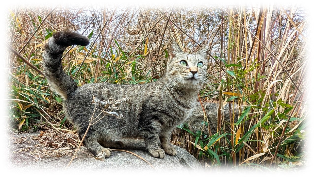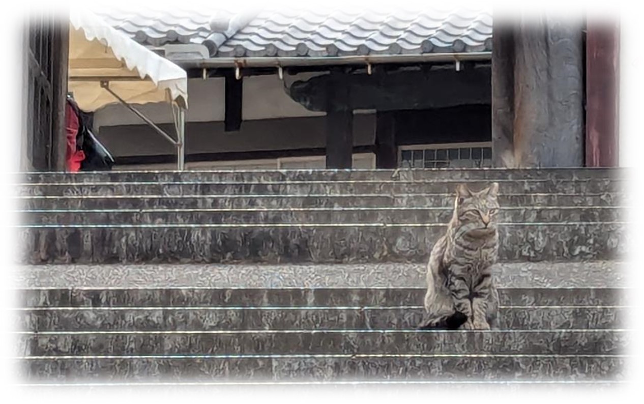 エスコートしてくれたキジトラが本堂右の北入口脇参道へ、あとを追うとその先に鳥居の姿があった。