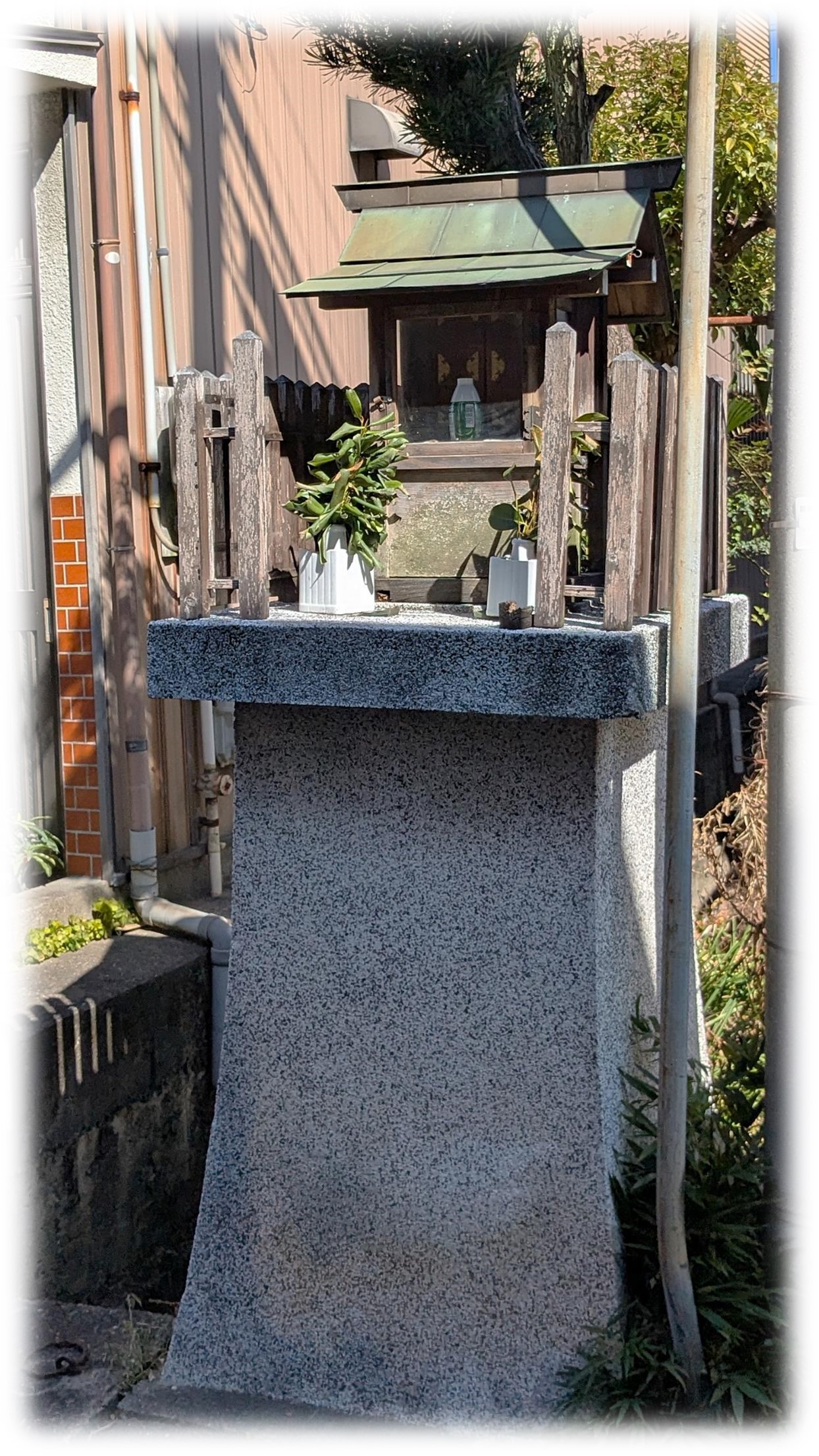 写真は、小牧駅から北西に徒歩5分ほどの屋根神と思われる社。