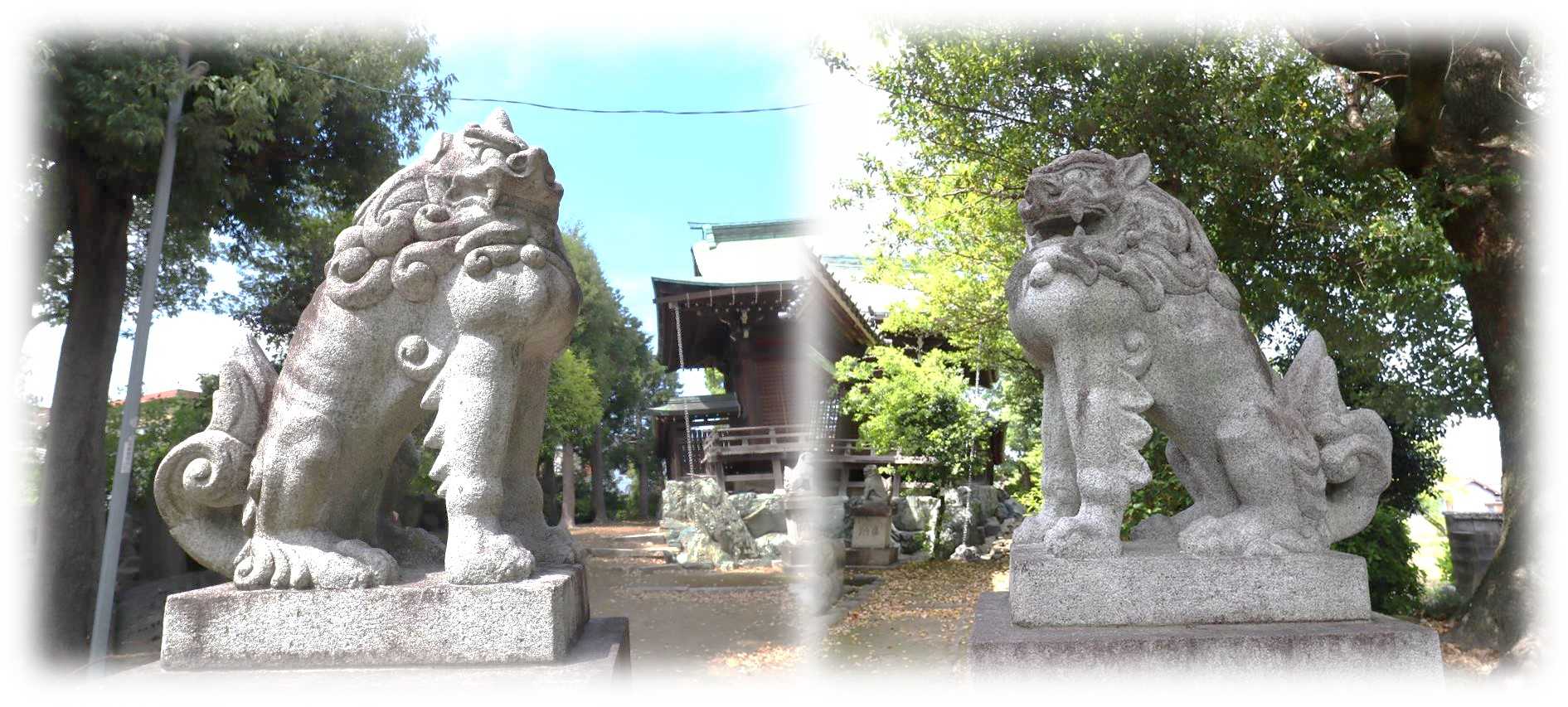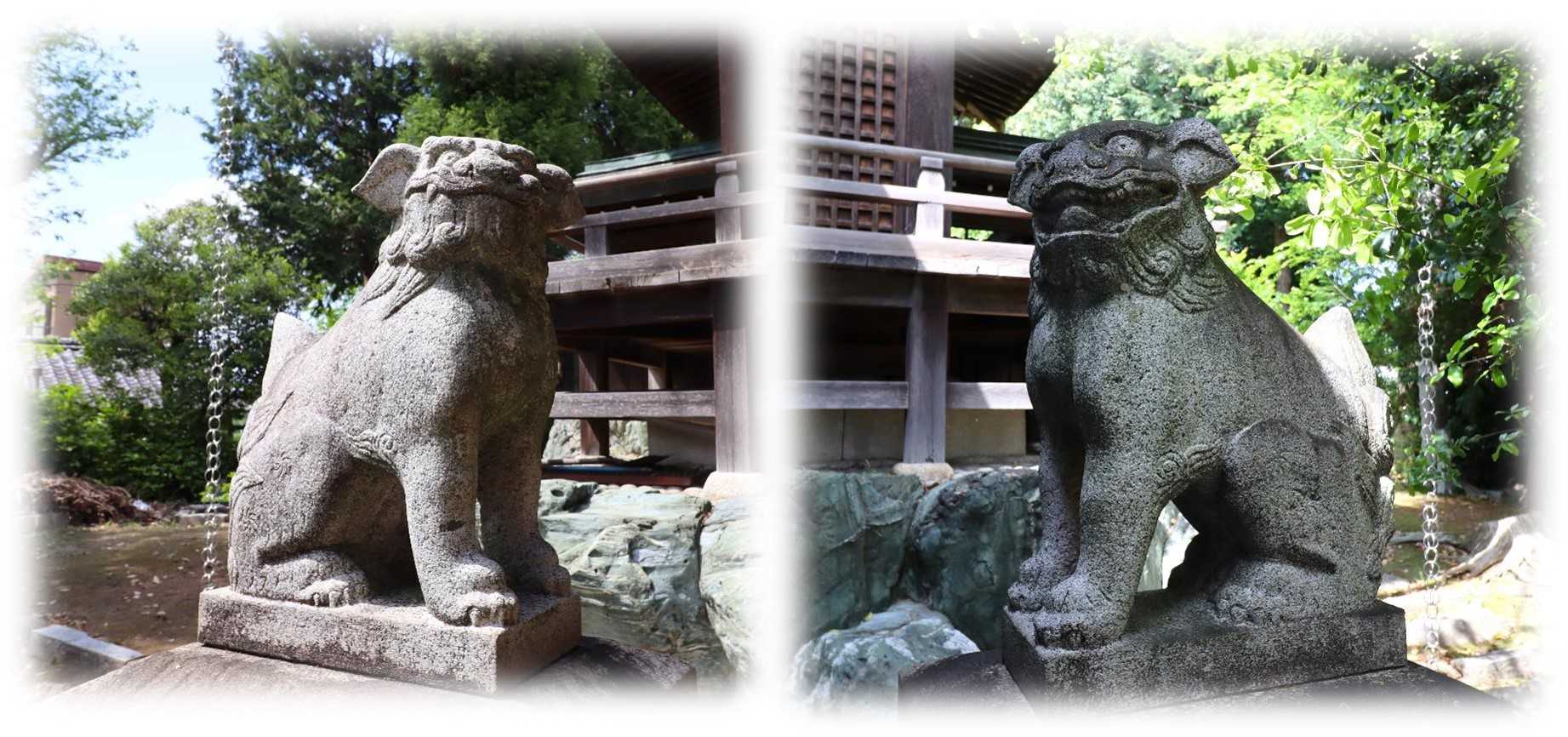 拝殿前の狛犬は昭和17年寄進の物で、吽形は角持ちで護国型の凛々しい姿をしています。