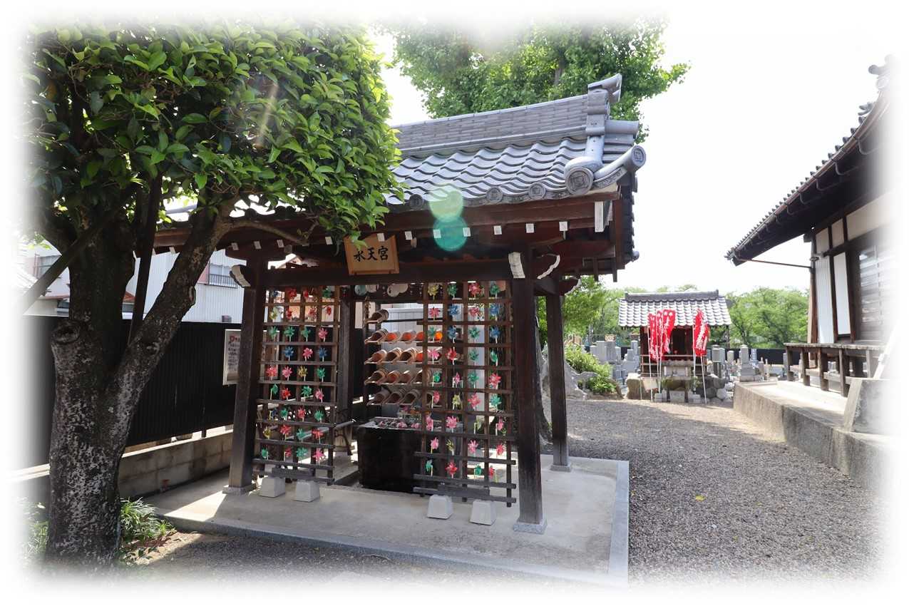 花手水、こちらお寺は四季おりおりの花を浮かべ参詣者を迎えてくれます。
