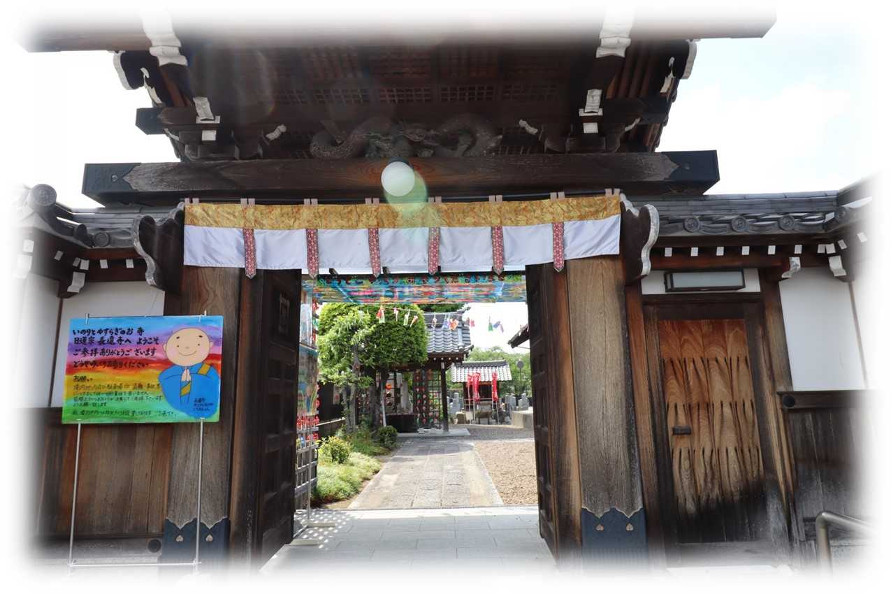 お寺というとなんとなく入りにくい印象がありますが、こうした鮮やかでポップな看板があると、気軽に立ち寄れる雰囲気になる。