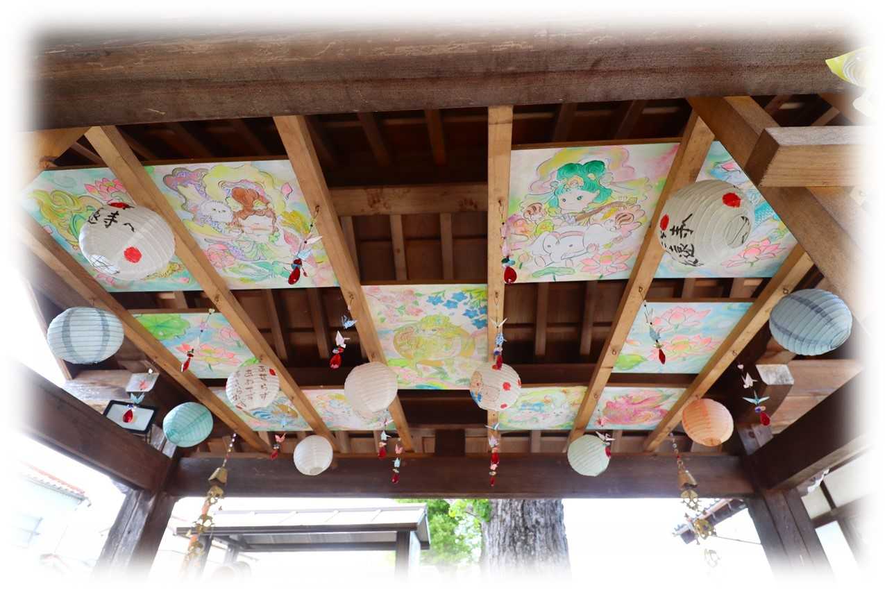 堂内向かって右に鬼子母神・十羅刹女、左に七面天女、 奥には帝釈天・七面天女・大黒天神が勧請されています。