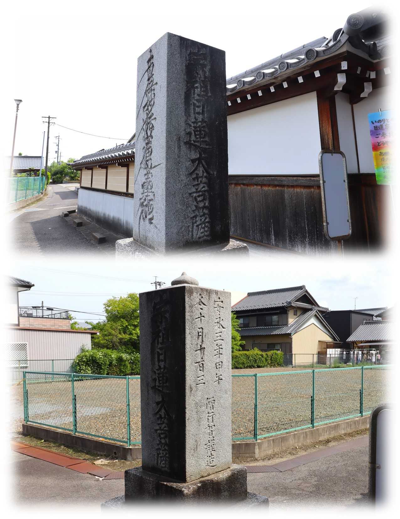 門の左右に南無妙法蓮華経と刻まれた題目塔があります。