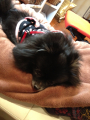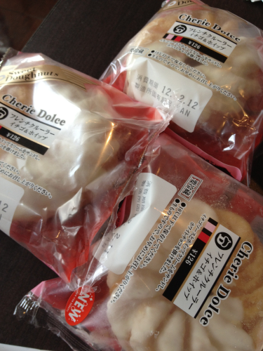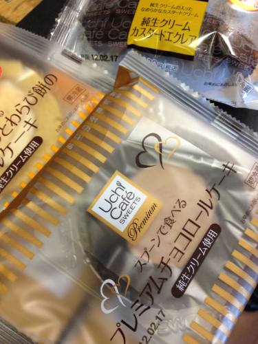 コンビニスイーツ新作だそうです♪めちゃおいしい!!3口でいただきました(笑) そしてキティとチョッパー柄の帽子。。。ではなく自転車のカゴカバー!生地を選んで作ってもらったそうで、あんまり可愛いので見せてくれたところ、スタッフが帽子にしてかぶって遊んでました♪