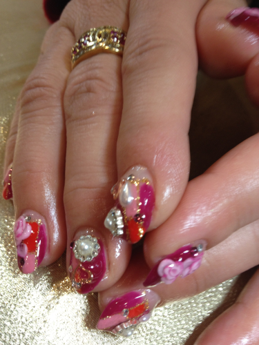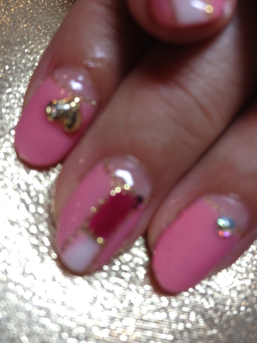 ああ、写真がぼやけてます ピンクベースのモザイク柄♪メタルハートでバレンタイン気分 ということで、今日もにぎやかな一日♪今週は、夕方は満席で、お昼間は内容と時間により可能かも!一度お電話でお問い合わせくださいね!! その他のこのごろ ネイルスクールでは、2月に無料アート講習会を開催次回のジュニアサロンは春予定♪HPリニューアル予定ツイッターやブログのあれこれ・・・(まだテスト中なのです) 色々とお伝えしたいことがたっぷり!少しペースが遅いですが少しづつお伝えできたらと思っています! さて、明日も夜まで楽しそうな皆様とお会いできそうそんな毎日に感謝です