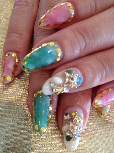 シャーベットカラーを大理石調にマーブリングストーンアートがポイント♪ おいしそうな仕上がり!