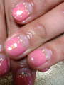やさしいヌーディピンクジェルネイルとかわうぃーね♪ネイルのお直しver.派手かわ~♪