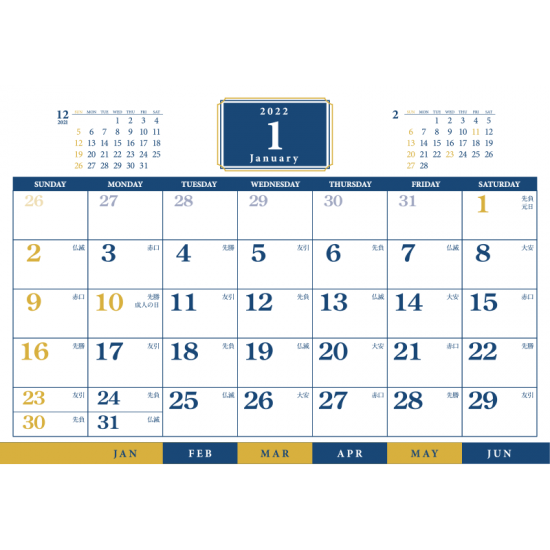 上品で高級感のある2色でデザインされたインデックス付きのカレンダーです