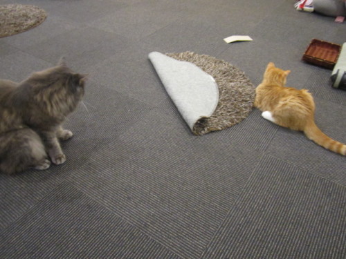 最近、妻と何かペットでも飼いたいなという話になっているゆくゆくは猫でも欲しいと思っているのだが、自分で猫を飼ったことはなく、猫と接するのに慣れる意味で、初めて「猫カフェ」に行ってみた。カフェといっても、販売されているペットボトルの飲物以外の飲食はできず、本当に猫と戯れるのがメインになる。カーペット敷きの部屋に10数匹の様々な種類の猫がいて、多くの人が楽しそうに猫と遊んでいた。時間帯によってはエサを与えることも出来た。基本料金は10分150円で、ちょっとの暇つぶしにも使え、長時間ならば割引プランもある。なので、またじっくりと訪れてみたい。今回訪れた猫カフェ「猫家(ねこや)」のページフラッシュなどたかなければ、撮影もOKだが、すばしっこく、タイミングを逃してて思うように撮れなかった^^;