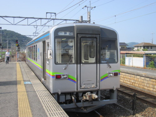 「サンライズ瀬戸」で岡山に到着した後は、普通列車で倉敷まで行き、水島臨海鉄道に乗車した。水島臨海鉄道は、倉敷から南下し、倉敷市街や水島臨海工業地帯を通り「三菱自工前」まで結ぶ非電化の鉄道で、所要時間は約28分である。住宅地や工業地帯を走り、ほとんどが高架線なのでローカル私鉄とは雰囲気が違うが、それなりの趣はある。JR倉敷駅に隣接して水島臨海鉄道の乗り場がある。こちらは「倉敷」ではなく「倉敷市」と名乗っている。水島臨海鉄道の主力車両の「MRT300形」。白地に水色のラインが涼しげだ。MRT300形の座席はロングシートとボックスシートが交互になっているのがユニークだ。車内には自衛官募集の広告が吊り下げていた。ここにも萌えキャラが使われているが、実際の自衛隊の現場でこのような人がいるのだろうか?「福井駅」といっても福井県ではありません。トマト銀行の看板が見えた。これほどインパクトある銀行名はないのであろうか?約23分で高架の水島駅に到着する。青地の駅名標が特徴だ。水島駅の駅舎も水色のラインがある。水島駅を出ると港が見えて、海が近いのを実感する。終着の「三菱自工前」駅。その名の通り三菱関係の工場が密集している。平日はもっと乗降があるのだろう。どことなく、工場の専用線のような感じの三菱自工前駅構内。三菱自工前駅から歩いて10分ほどの所に倉敷貨物ターミナルがあり、気動車が休んでいる。元JR東日本久留里線のキハ37も、水島臨海色や国鉄色になっていた。(奥の右2編成)運用から外れたキハ20の姿もあった。いつか復活運転してくれないだろうか?この後、倉敷に戻り伯備線で清音駅まで出て井原鉄道の旅が始まります。水島臨海鉄道のページ【送料無料】DVD>昭和ロマン宮沢賢治の鉄道紀行旧列車で行こう~水島臨海鉄道編~ [ 宮沢賢治 ]※当ブログを「にほんブログ村」に登録しました。ポチよろしくお願いしますにほんブログ村にほんブログ村にほんブログ村