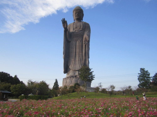 この3連休の初日、妻と茨城県の牛久大仏まで出かけた。この時期、大仏の周辺はコスモスが咲き始め、100円で一人10本まで摘み取りができ、部屋のインテリアにもちょうどいい大仏様の足元にはコスモスが咲き乱れ、まるで極楽浄土にいるような雰囲気だ。下から見上げた大仏様。高さ120メートルでビルの27階に相当する高さは迫力がある。大仏様の裏には小動物公園があり、ウサギやハムスターなどの小動物がいて癒される場所だ。100円でウサギのエサも売られてて、自分でエサを与えることも出来る。モルモットもいて、エサを求める姿が愛くるしい。モルモットの顔。ほかにも、ヤギやミニブタもいる大仏様のすぐそばにいるので、ありがたい存在に見えてくる。周辺葉っぱも色つき始め、日没時間も早くなり、秋になったのを実感する牛久大仏のページ※当ブログを「にほんブログ村」に登録しました。ポチよろしくお願いしますにほんブログ村にほんブログ村にほんブログ村