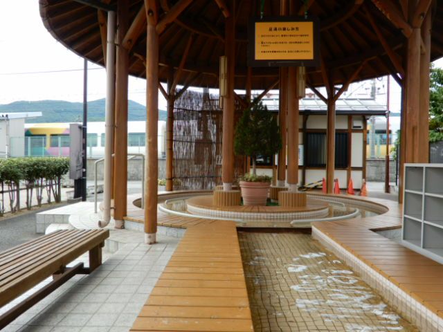 特急は停まらない無人駅ですが、駅前に無料の 足湯 があり、日中に限り利用できます。