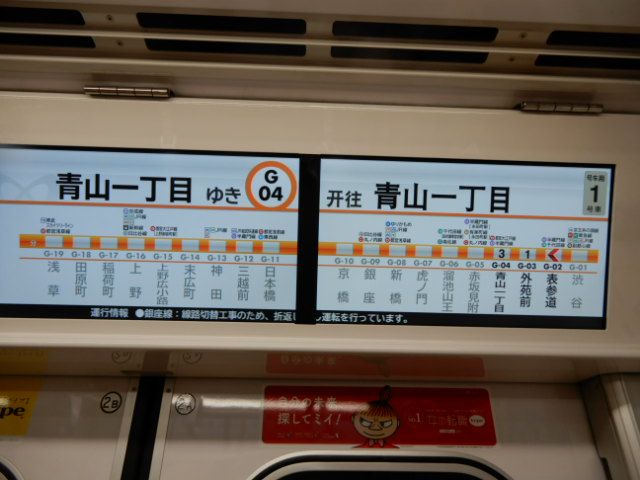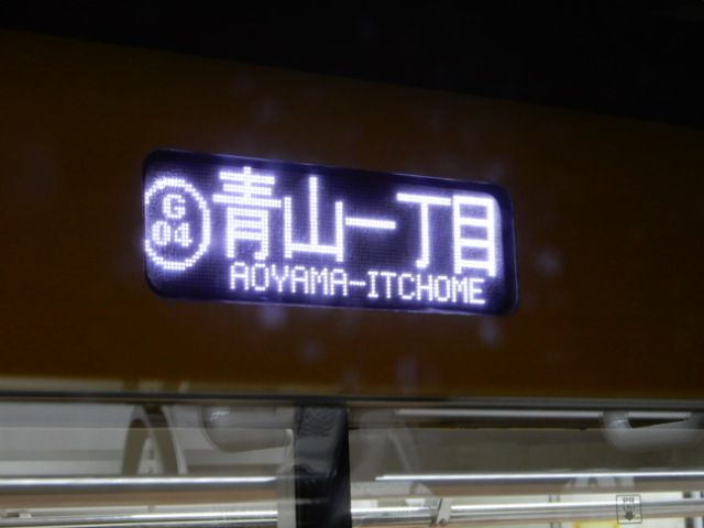 銀座線は大半が浅草~渋谷の運転なので、表参道、青山一丁目などの表記は珍しい。