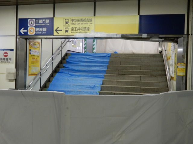 従来のJR改札近くの銀座線ホームは閉鎖された。