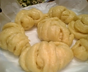 相変わらず海外旅行へ行こうとネットで探してたら どうもシンガポールと香港がお得らしい・・・ でどんなところか探してるうちに 中華蒸しパンにたどり着いた この間から肉まん作ってたけど 中華料理と一緒に食べるマントウ・・・・・ 作ってみました・・・ コンデンスミルクで食べようと 勝手に形を変えて蒸しました 花巻のつもりが・・・・難しいです 材料も水を豆乳にかえて ウコッケイの卵頂いたので 入れて見たり 3個で300円だったらしいです リッチな蒸しパンかと思ったら イーストが入ってるせいかずっしり重くて で・・・・思いついたのが 粉や『こん吉』さんで食べた『カーパオ』 これは長崎の豚角煮まんですが こんなのにレタスとそぼろとかしょうが焼のようなのが はさんであります 鶏肉を焼いてお酢と醤油とお砂糖みりんにお酒で煮込んで サニーレタスとマヨネーズ挟んでみました これは美味しい 今日は姉と姪っ子達が来たので これをおやつに出したら喜んでくれました お酢のきいたお肉がとってもあうんです アジアもちょっと美味しそうかも 迷うな・・・・