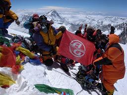 近藤謙司氏率いるアドベンチャーガイズ公募登山隊山頂登頂の画像です!世界最高地点に「フットレスキュー」のインソールが登った瞬間です!