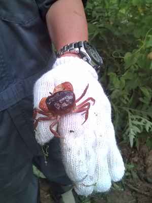 今日は、またまた中尾のみんなで作業。あるじは、ホタル関連の作業をしてました。そこで見つけたもの。まずは最初に沢ガニそして次はこれ。何かわかりますか?モリアオガエルの卵です。こんな風に、木の葉っぱに卵を産み付ける、とっても珍しい貴重なカエルさんです。