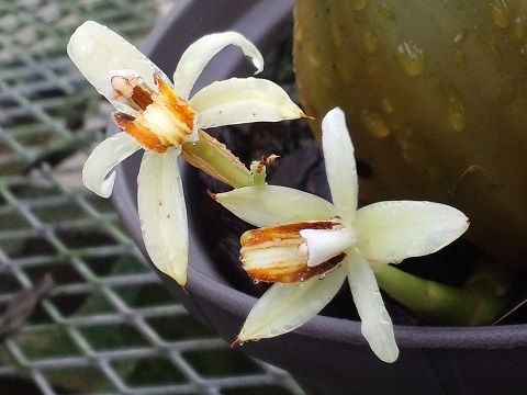 着生ランです。10年前の春にジュメさんに戴いたものですが