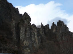 新年おめでとうございます。家の近くに生えている松、熊笹、梅もどきを、染谷焼の壷に、生けました。本年もどうぞよろしく、お願い致します。今年の初詣は、長野県・群馬県境の和美峠から、姫街道を通って、下仁田から妙義山の方へ行きました。妙義山は、地図には「日本離れした荒々しい山容」と表現されています。軽井沢から碓氷峠を越えると、いつも新鮮に「すごい山!」と目をみはります。ゴツゴツした岩山の連峰です。高速道路から山の上に見える白い「大」の字は、大国さまの大でなくて、「妙義大権現」の大の字を表し、昔、中山道を旅する人が、山に登らなくても、下から手を合わせていたそうです。 中之嶽神社にお参りしました。新築された大国さまです。大国さまの上の轟岩を御神体にしているのが、中之嶽神社です。 きつい階段を上って、お参りしました。紅葉の季節には、この神社からの石門巡りがお薦めです。軽食と温泉にでもと、立ち寄ったもみじの湯。去年、桜の季節に来て、庭で妙義山を眺めながら、おべんとうを食べていたけれど、今回は温泉へ。そして、ラッキーなことに「本日入場無料」でした。関東平野の方は、すっかり晴れて、120kmぐらい先の筑波山がくっきり。温泉に浸かりながら、雪を頂いた赤城山も見渡せました。露天風呂も広々として、お薦めの立ち寄りの温泉ですよ~