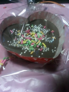 明日はバレンタイン 手作りしたいと言うので、、娘と一緒に買いに行ってきました 全部自分でやりたいと言うので、簡単にできるものをチョイス まず、チョコを溶かして、カップに流し入れ、アラザン、チョコスプレーを上に飾りましたホントに溶かすだけ~ それから、もうひとつ。トリュフを作るセットも購入 やわらかくして、しぼり出して、ココアをまぶしながら丸くしていきます。手をチョコだらけにしながら作ってました 自分ひとりでできた事に、大満足なようでした