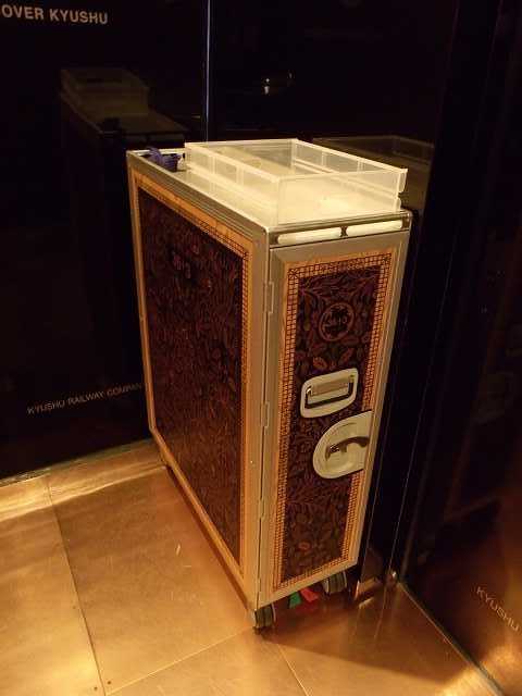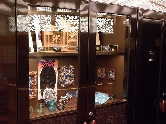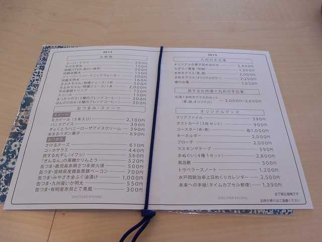 お土産はキーホルダーやクリアファイルから、椿の箸、手ぬぐい、風呂敷、ぐい呑みなどの実用品、組子細工までとにかく豊富です。リピーターを増やす仕掛けはこういったところにも出ていますね。一部のお土産品は4号車でチェックできます。