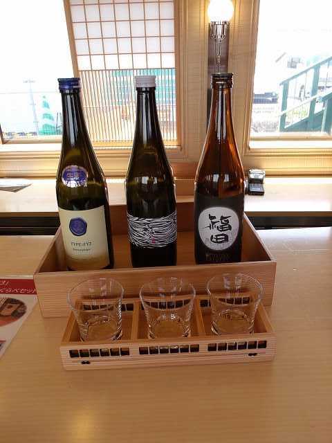 地酒の飲み比べセットです。長崎市内で自転車を使う予定があったことからアルコールは断念(><)。